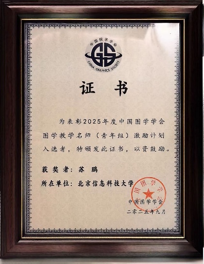 院长苏鹏教授入选2025年度中国图学学会图学教学名师(青年组)激励计划,并因在2021–2025年间为学会作出突出贡献,获评“中国图学学会优秀个人会员”。