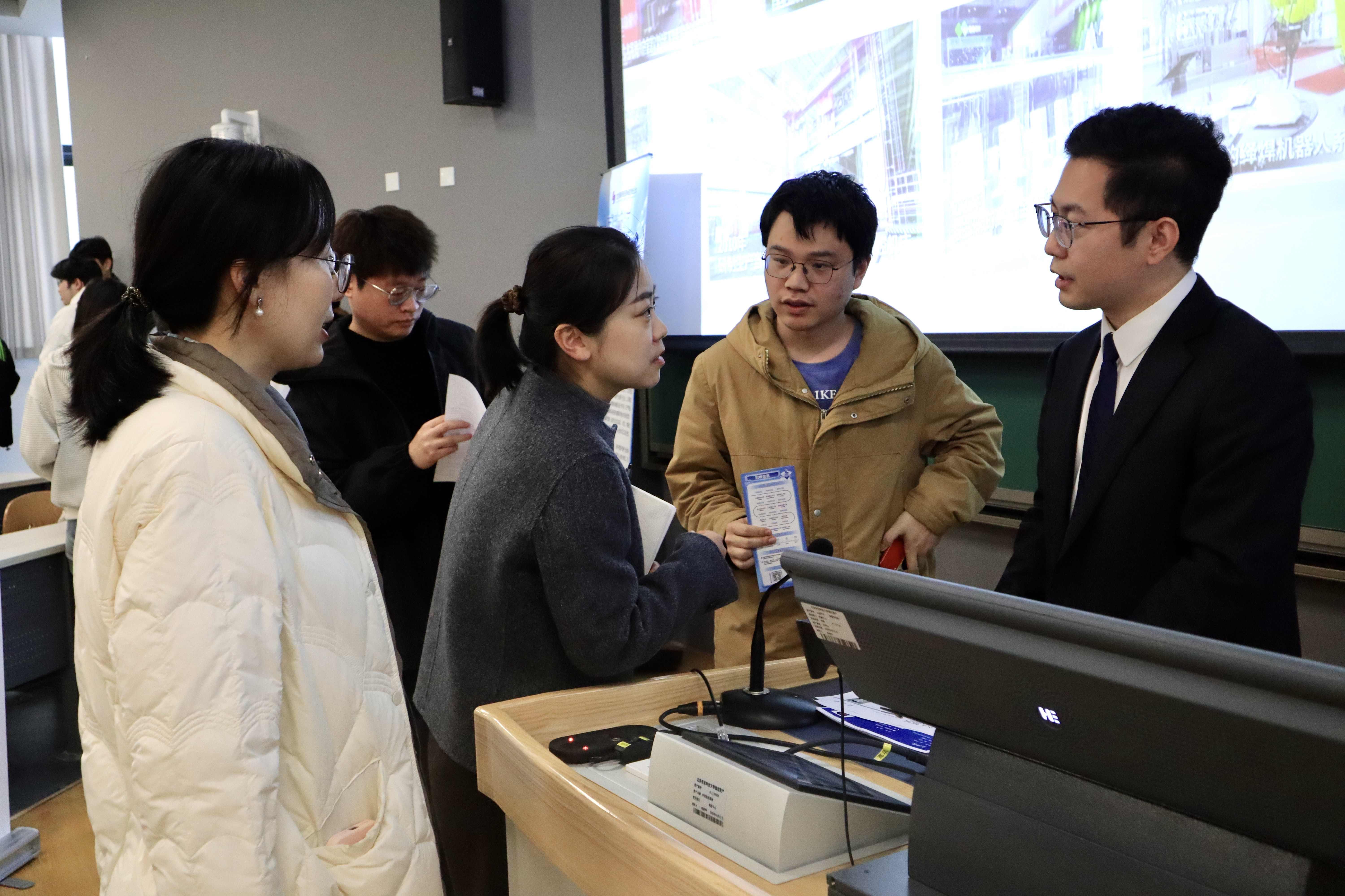 双选会现场气氛热烈,吸引200余名毕业生到场。京城机电人力资源部张大伟向毕业生系统介绍了公司的发展历程、技术实力和产业布局,讲解了公司的人才战略及职业发展机会。各单位招聘团队围绕培养计划、岗位前景及招聘流程与学生做了深入交流。