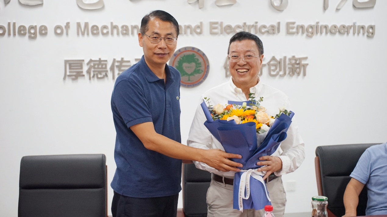 王国权申请回顾了自己数十年的从教生涯,特别提及2004年带领学生建设车辆工程专业与配套实验室的难忘经历:“当时条件有限,但同学们热情极高,虽然忙碌又辛苦,内心却很踏实。”他寄语青年教师,希望大家坚守“工匠精神”,勉励在场学子不忘“机电报国”的初心,将所学知识转化为服务社会的实际力量。随后,青年教师代表向王国权教授献花,感谢他长期以来在教学科研领域给予的悉心指导与无私帮助。。